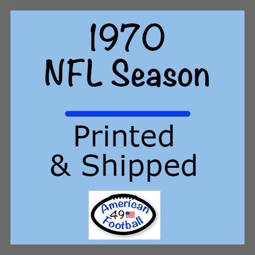 Relive past NFL seasons. Each Printed season includes the Team Charts printed on 48lb Glossy paper and looks great. The Defense/Kicking Chart is printed on 40lb paper., and Game stats tracker on 24lb paper